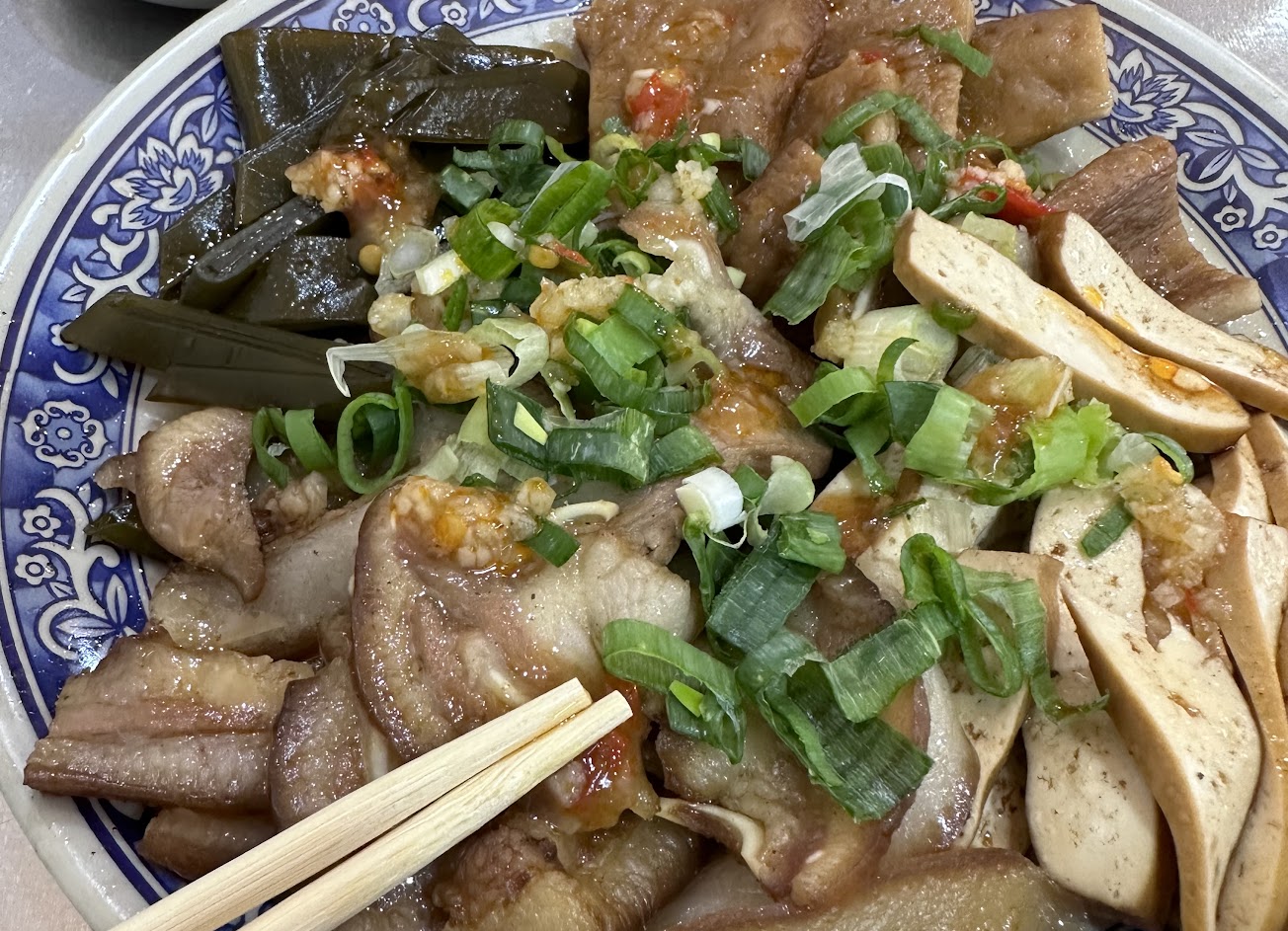 滷菜蠻不錯的有入味,推薦嘴邊肉和豬頭皮,還有附蒜泥和辣椒(會辣的),但空心菜$40卻是超迷你份量,傻眼貓咪。建議大家專攻滷菜即可。