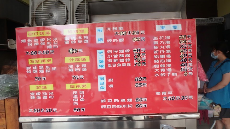 辣椒不錯,不過有點鹹,滷菜本身也有味道,蒜頭也是鹹的,所以也酌量吃。麵等了13分鐘,然後我第一次吃,先問內用菜單在哪,跑去櫃檯劃單再給POS機單據,然後去外面點黑白切,然後又算一次錢。其實過程中是蠻混亂的,理論上人都擠這邊擠這邊的,一堆人摸不著頭緒。出菜了還在問是誰點的,那幹嘛用POS機結帳,很明顯沒有連線到內場,然後東西賣完還要叫櫃檯不要接,有點亂七八糟,主要就是品項多,做餐變得很複雜。我是覺得,有些黑白切就先切好等著,不然還要客人夾一夾再算有點慢,再來就是櫃檯結帳後,內場就要做菜了,然後也要依據憑單出菜,不然送餐還要喊。簡單來講就是要走麥當勞模式。內場很多人會去併桌,其實這就跟漁港麵雷同,但是品項多,雖然店員也多,但就是很亂。明明菜單上也有寫小菜品項,不如在用餐高峰就先擺出來,也不用等到接單再切,還有煮麵的時間有點長,尤其是擔仔麵應該要很快的,只能說流程上需要改進。