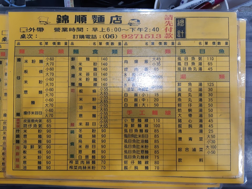 2024最新在地推薦餐廳的菜單_錦順麵店的菜單、圖片