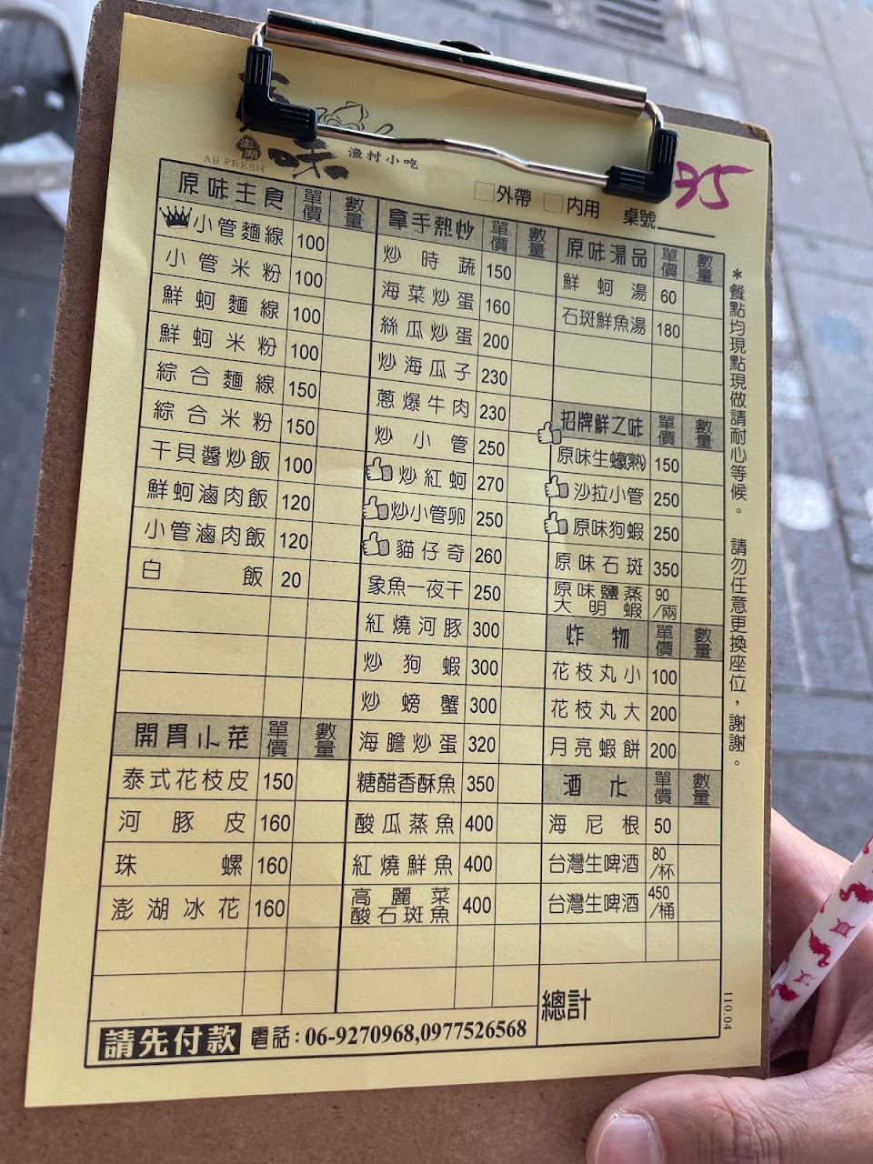 內用點完餐菜都還沒煮就要先結帳也沒收據.人行道座位餐廳級收費又自行去取筷子、湯匙…服務差!失望!