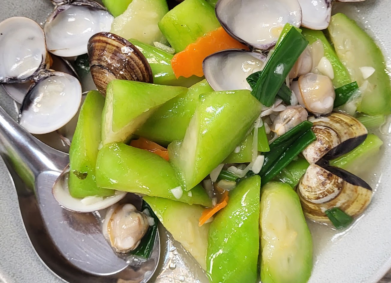 蛤蜊絲瓜、海膽仙人掌炒飯、㸆鍋小卷,
