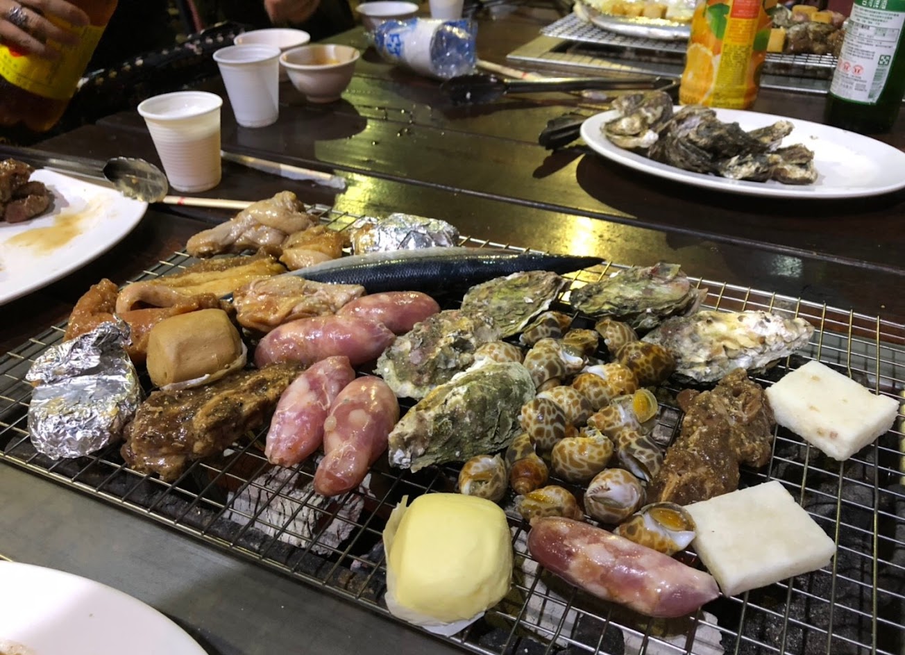 露天烤肉有些飛蟲是必然的,端看個人接不接受。品項可能不算多(但我也沒吃過其他家),可是也很足夠了。生蠔新鮮、肉品表現普通,小雞腿不錯吃,菇類、絲瓜等等蔬菜也不少。飲料是紅茶可暢飲。