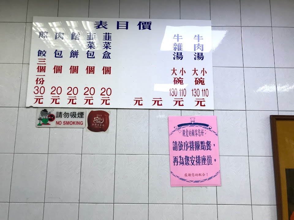 一早起來就是排隊長龍,不過老闆效率很高,牛肉湯,牛雜湯都已經事先打包好,加上選購的肉包或是韭菜包等,下單以後幾秒鐘就完成打包。牛雜湯味道濃郁,裡面的材料就是牛肚和類似牛犍的瘦肉,口感非常好。韭菜包也是料多味美,怪不得總是排隊。唯一缺點是沒有內用區,所以大家拿了餐點以後就是當街找地方享用,很有特色。