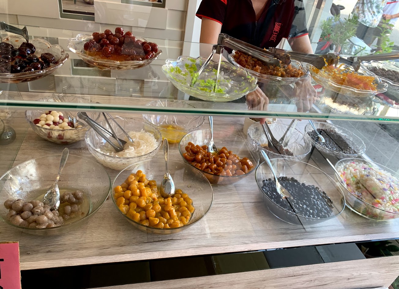 有八種料可以自己選擇,芋頭粉圓跟蜜地瓜都很推薦,有室內的座位可以坐,但人數有限。有熱的燒仙草也有冷的嫩仙草可以自行選擇,價格都是50元,點心下午茶都很適合。(20210318時)