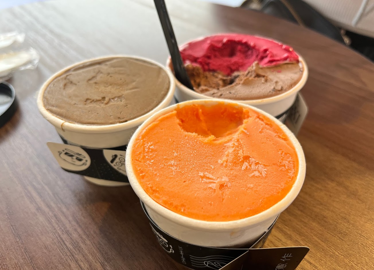 超級棒的冰淇淋店 來澎湖必吃! 可以說是澎湖的「宮原眼科」 但是價格比宮原眼科親民非常多 而且味道口感完全不輸他們 跟朋友來的三天內就來了兩次 口味選擇比較少 但每一個口味都是絕品 感受到老闆滿滿地用心 內用的時候跟老闆跟店員甚至很親切地請我們試吃各種口味 新推出的檸檬口味真的是出乎意料地美味 現做的咖啡還會幫你用很可愛的易開罐加蓋,很酷又方便外帶! 雖然店小,但店裡的所有微小細節都設計地很有風格 可以感受到經營者的細心
