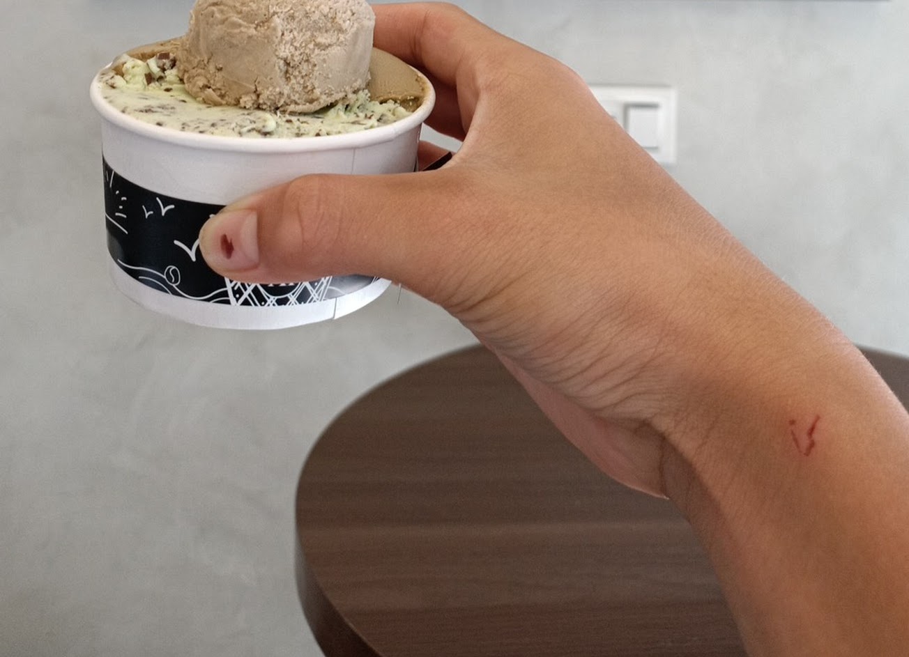 我們在店內吃完又忍不住點了開心果口味 除了冰淇淋還有一大口的開心果醬 真的很優秀 非常推薦