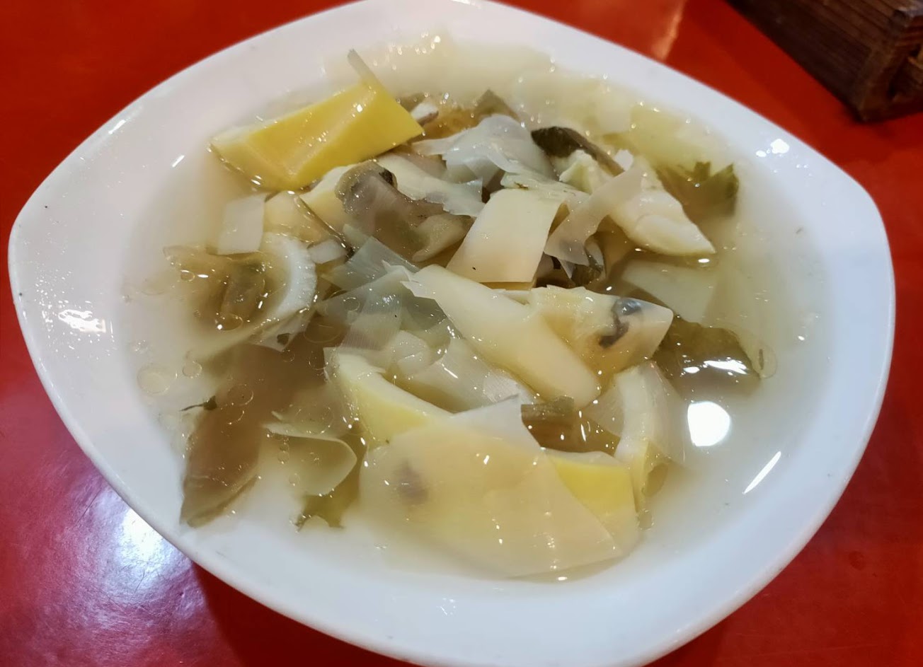 鹽酥魚片皮炸的酥脆,肉質鮮甜。油雞入味好吃。筍子酸菜雞湯也是當季美味料理。