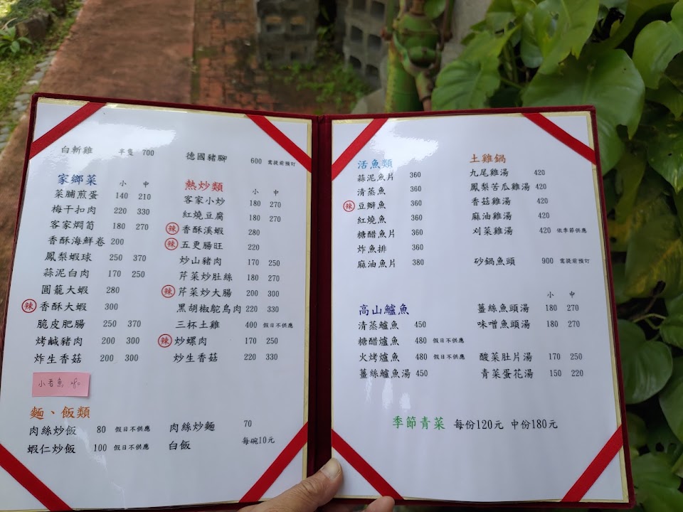 今天星期一,主觀意思認為可能沒什麼客人,加上現在又是防疫皆段,到了現場一看哇客人還蠻多的,我們三個人點了5菜一湯,心想這麼偏僻的地方,菜應該普普,唉~菜一上桌所有菜我無法去挑惕, 每道菜色香味具全,海鮮卷,三杯雞,白斬雞,蒜泥魚,必點,三人用完餐順便戶外拍照,這次沒白來!