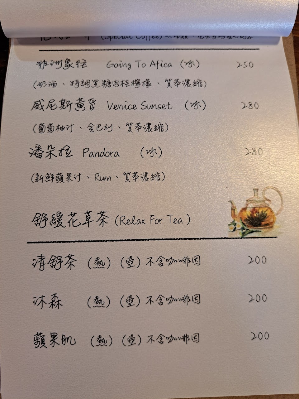 這次喝卡布跟啡檸不可 請看圖片 。