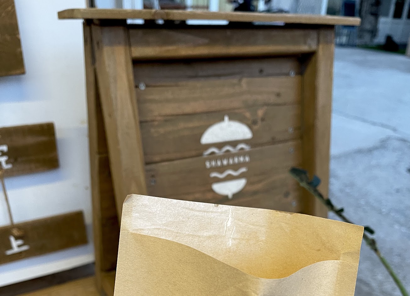 東西好吃美味,現點現做。電話預訂節省等待時間。 比起傳統的沙威瑪,加入德腸後更豐富了口感。 飲料像血袋包裝,可直接吸飲,也方便攜帶。 下次必再光臨回顧。