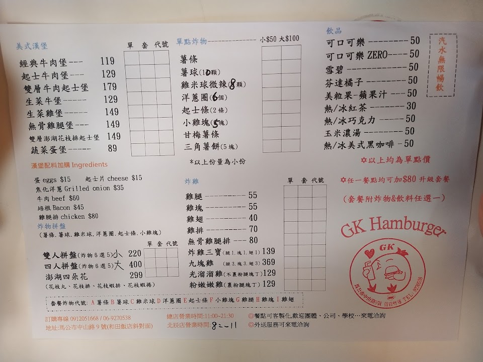 2024最新在地推薦餐廳的菜單_佶肯美式漢堡炸雞GK hamburger的菜單、圖片