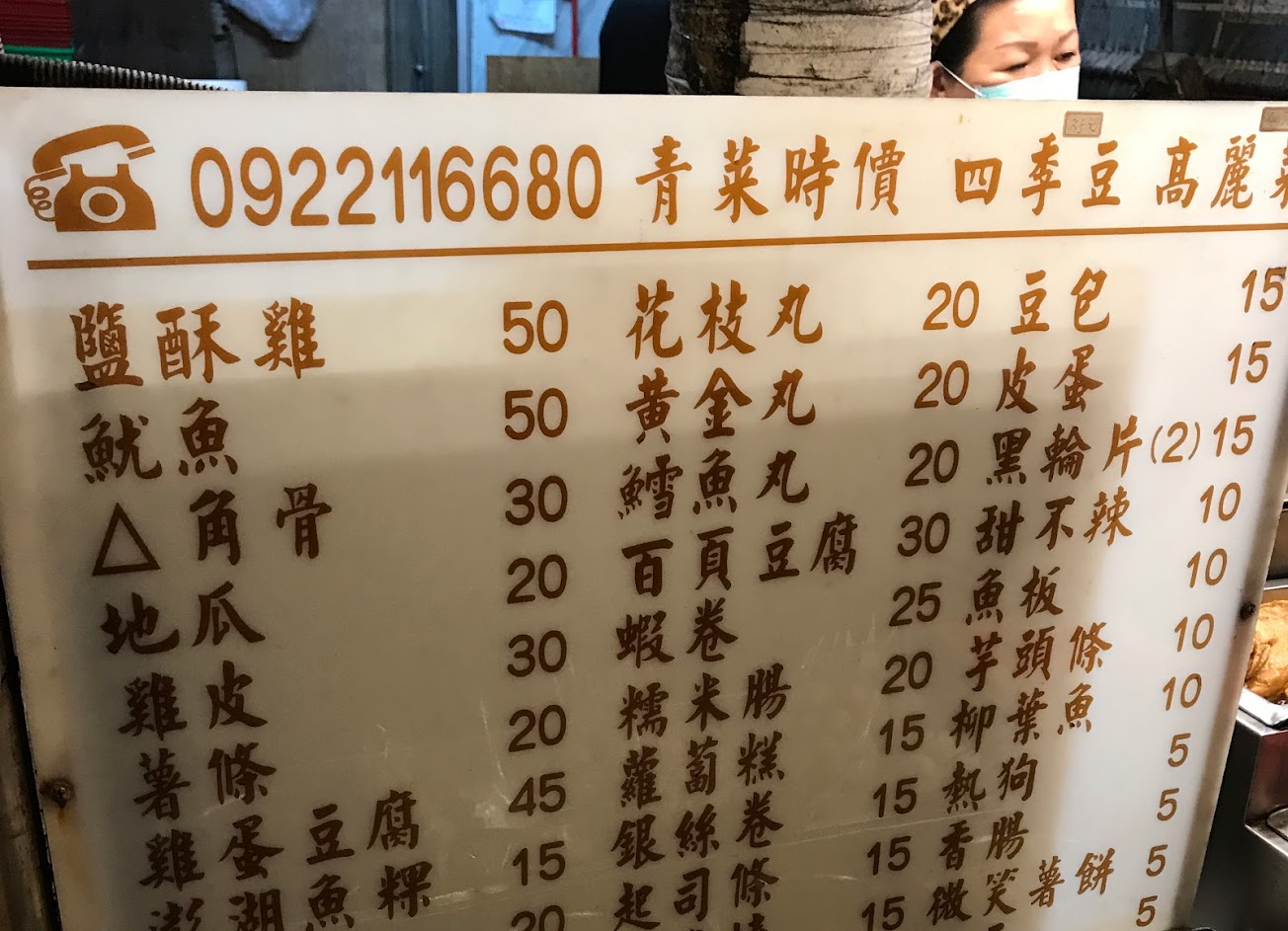 豆乾、百頁、熱狗、香腸、魚板、甜不辣、加50三角骨(還剪過的)這樣150