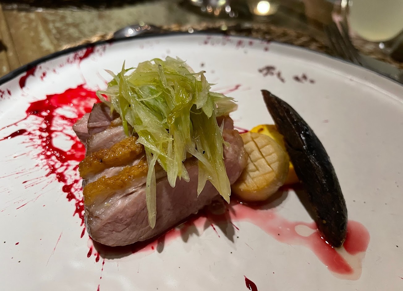 將鴨胸的皮烤像港式燒肉一樣,非常香酥,但肉卻還是很柔軟,沾上微酸的仙人掌醬,平衡了鴨肉本身的鴨味,榮登本餐第一名!