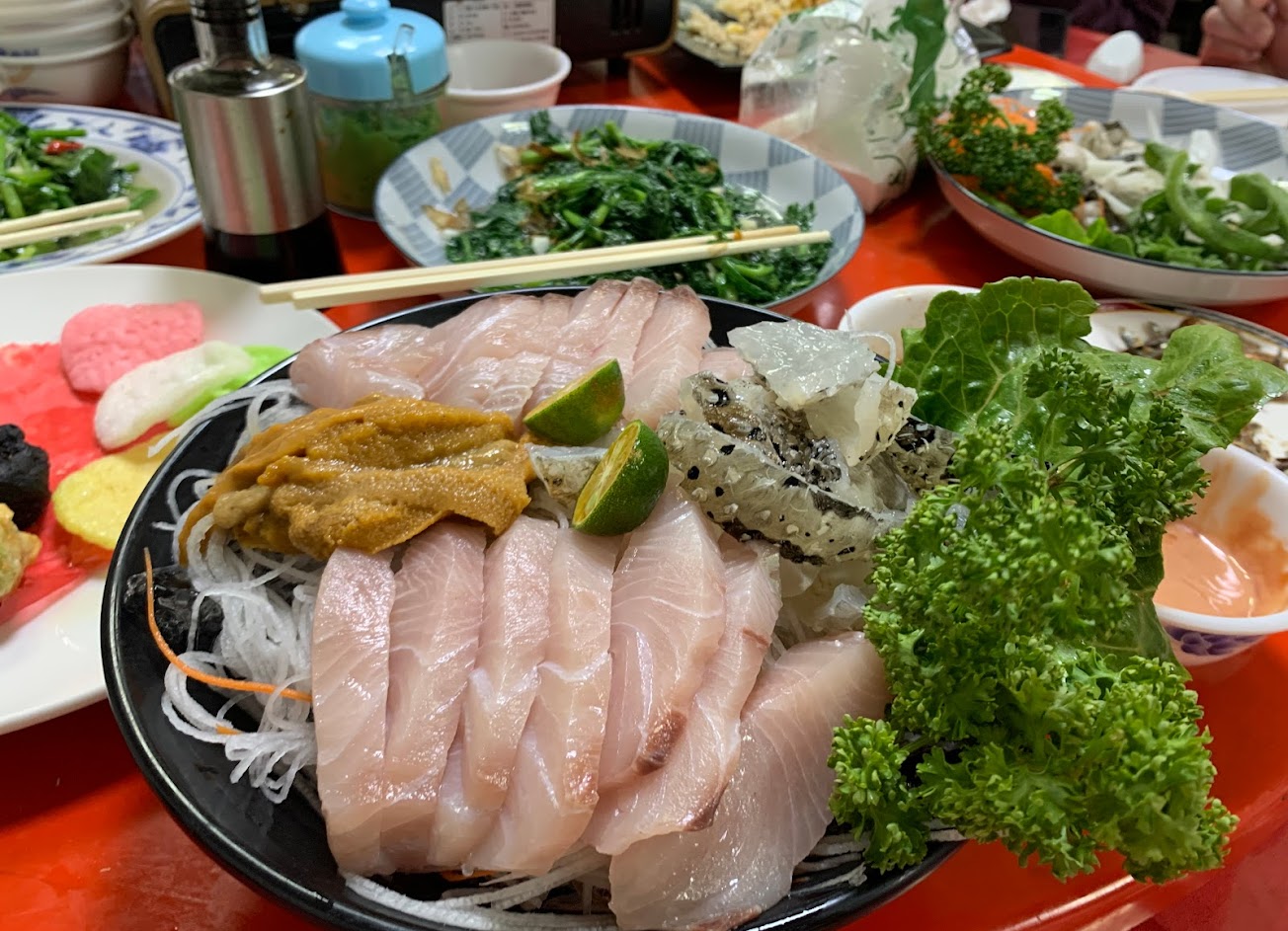 量多、好吃,大推南瓜炒米粉,真的太好吃,生魚片原本點時覺得有點貴,但來的時候超級多,季節限定的大海瓜子也好讚,鮮魚湯的魚超級鮮甜?