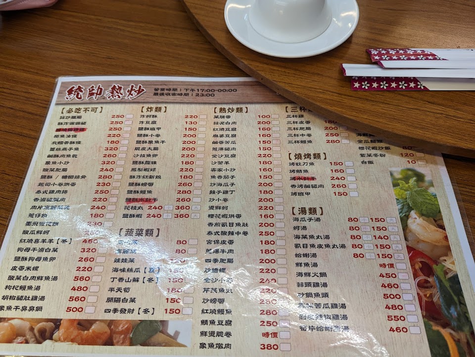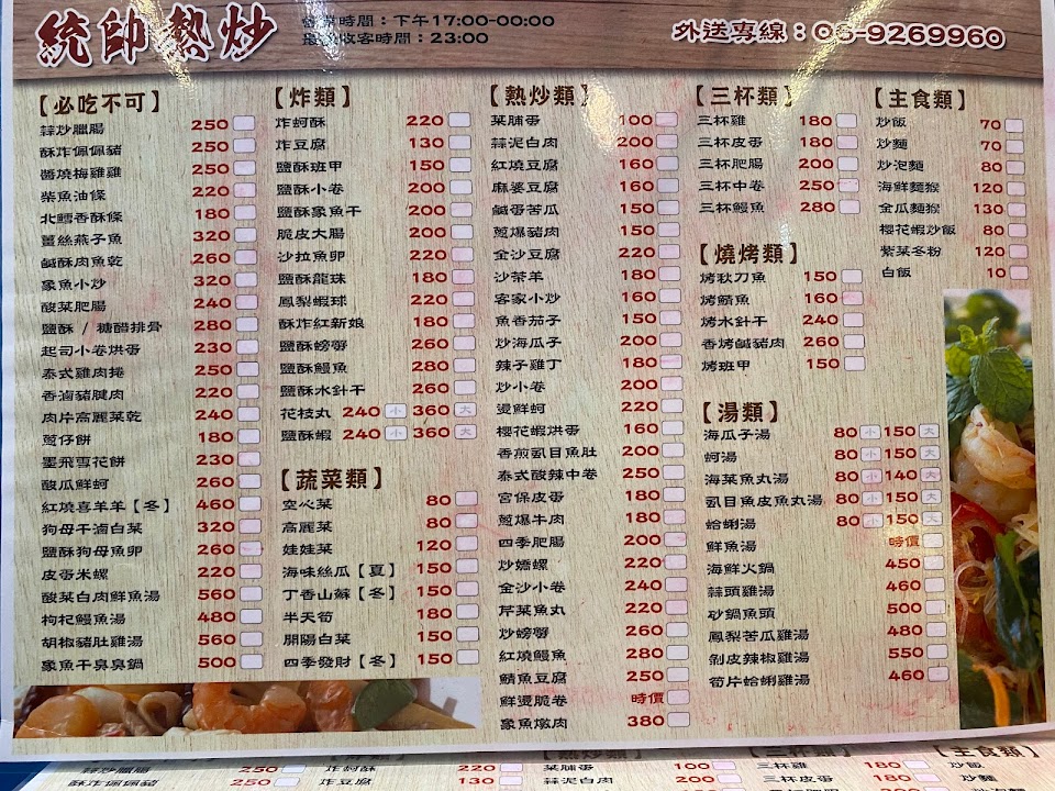 2024最新在地推薦餐廳的菜單_統帥快炒的菜單、圖片