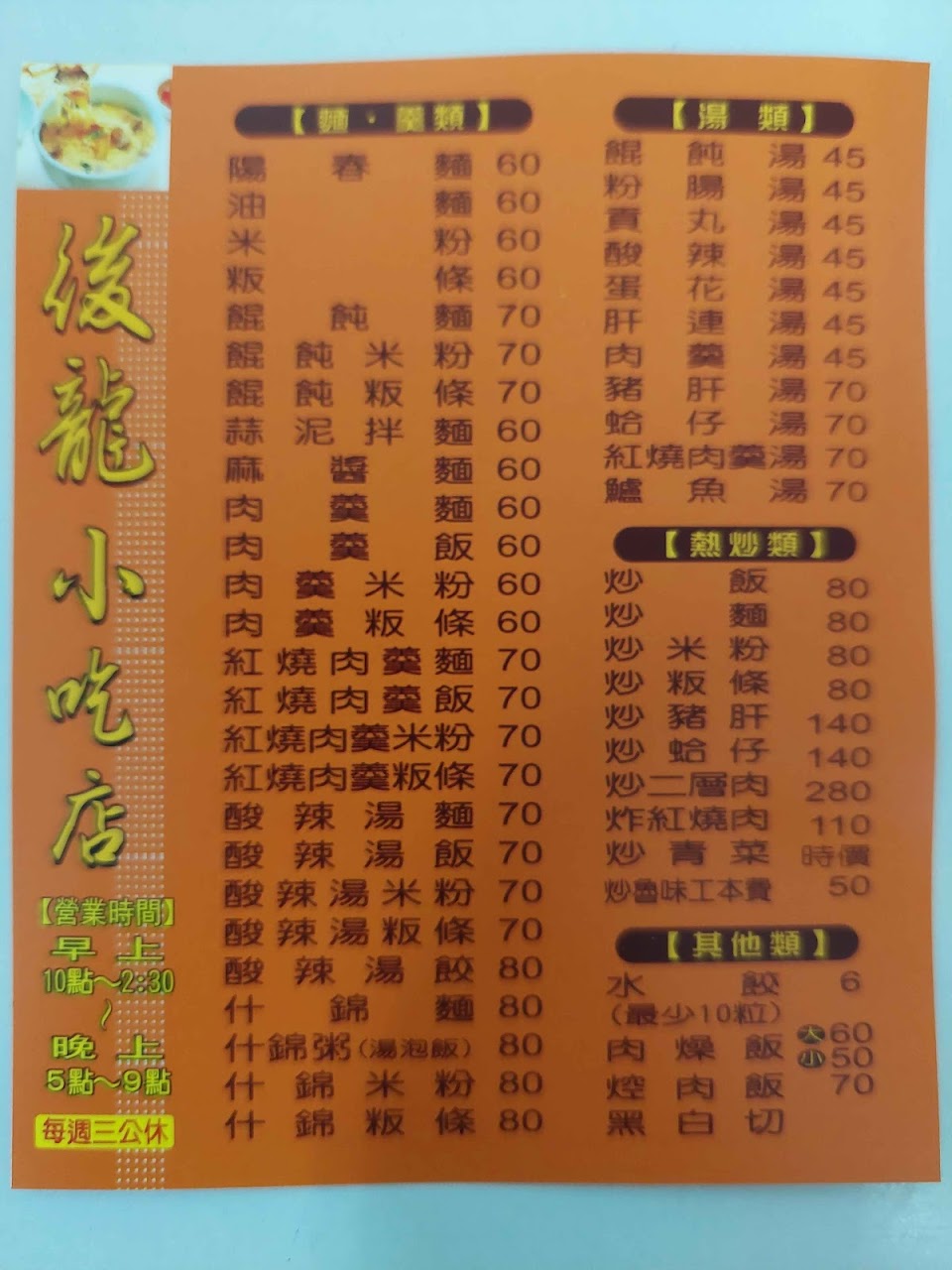2024最新在地推薦餐廳的菜單_後龍小吃店的菜單、圖片