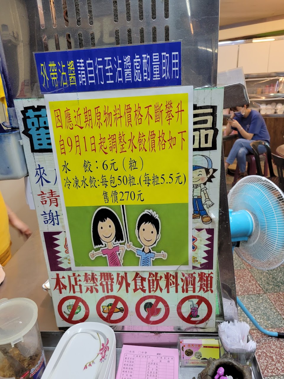 吃水餃 重點是後面架上的辣椒沾醬