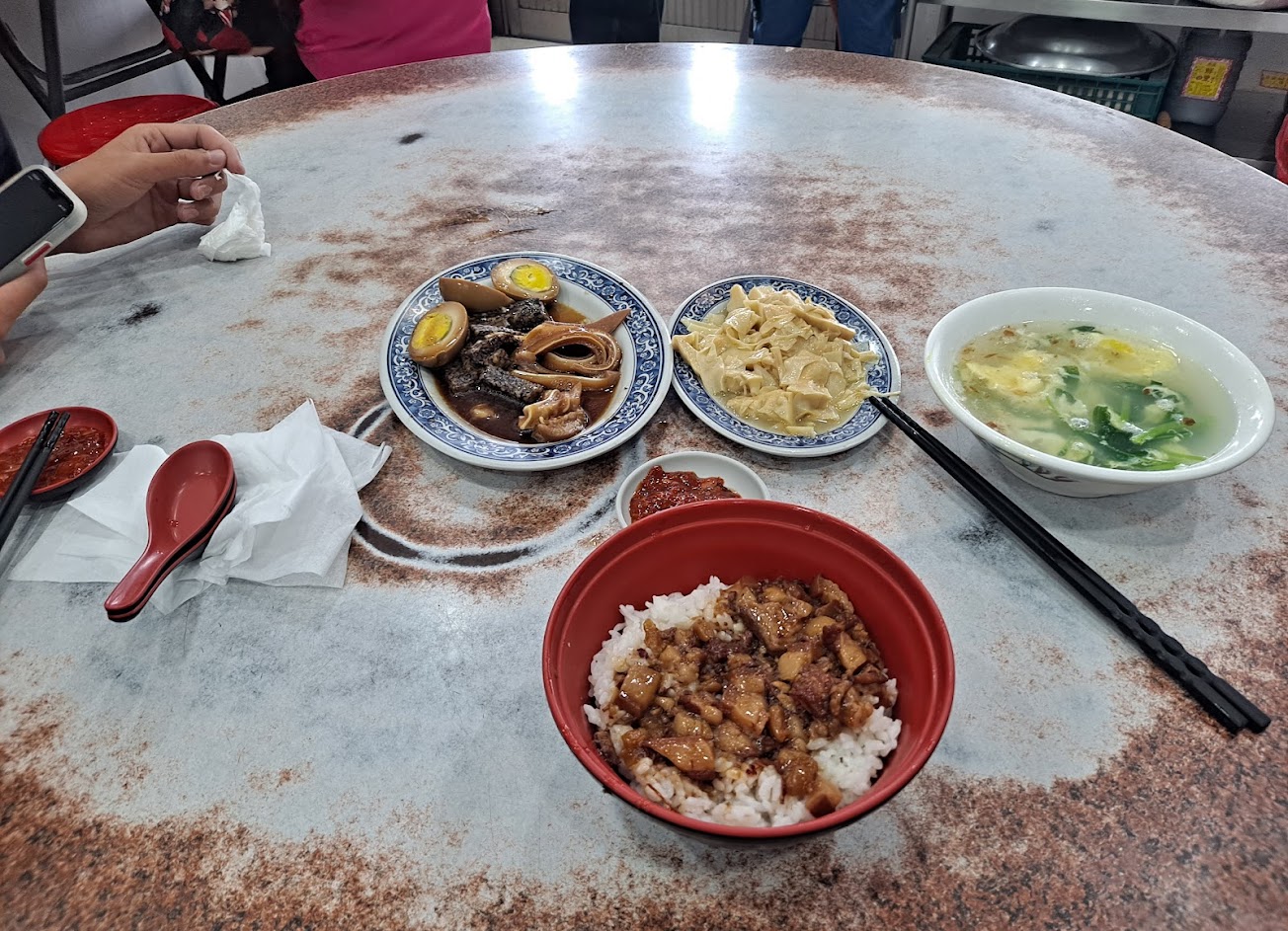 滷肉飯白飯超級軟爛、豬血湯酸菜像是煮好才加 湯頭很淡無酸菜味但咬到酸菜時又過酸鹹、牛肉湯偏醬油死鹹的類型