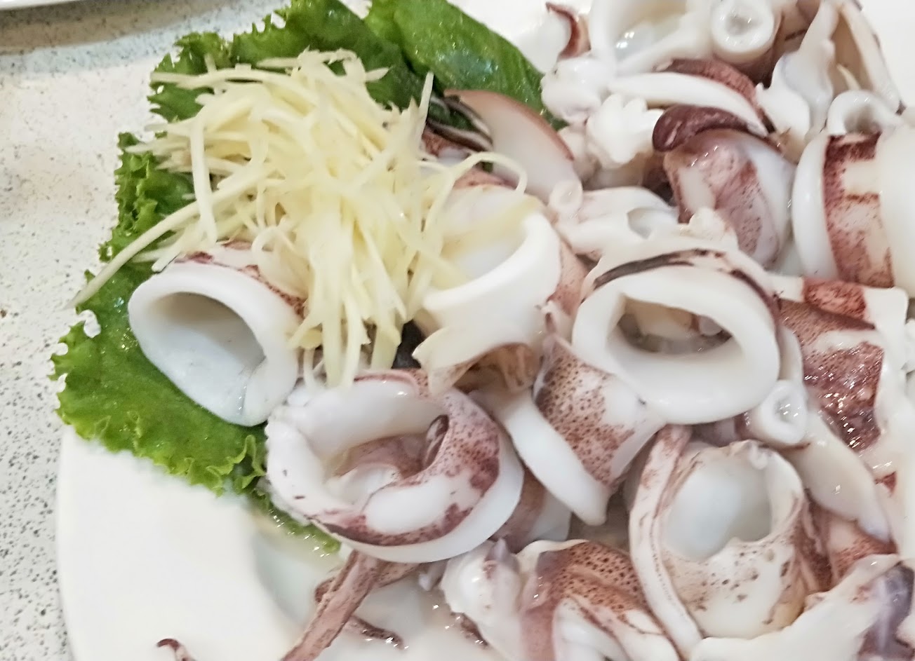 食材都新鮮好吃,魚我覺得味道普通有土味我不喜歡;小卷~我公公覺得是有新鮮但蒸的時間過久,所以失了其Q彈的口感;鮮蝦很新鮮,好吃;冬瓜盅湯~喝起來清爽,有排骨、百果、豬肚、鳥蛋;豬肋排~鹹香不乾