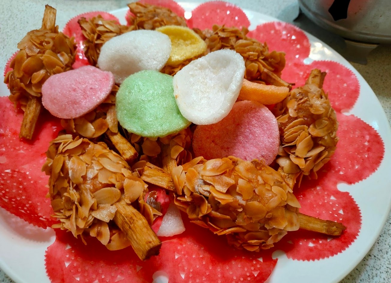 甘蔗蝦是用杏仁片包住蝦肉裹在甘蔗上,算是個蠻有意思的料理