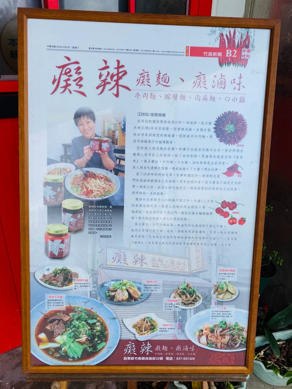 尋找後龍美食找到這間風格鮮明的店,老闆夫妻自製辣醬非常美味。今日外帶他家不同的小菜跟牛肉麵都很有水準,尤其癡汗乾麵喜歡吃辣的人一定會意猶未盡。