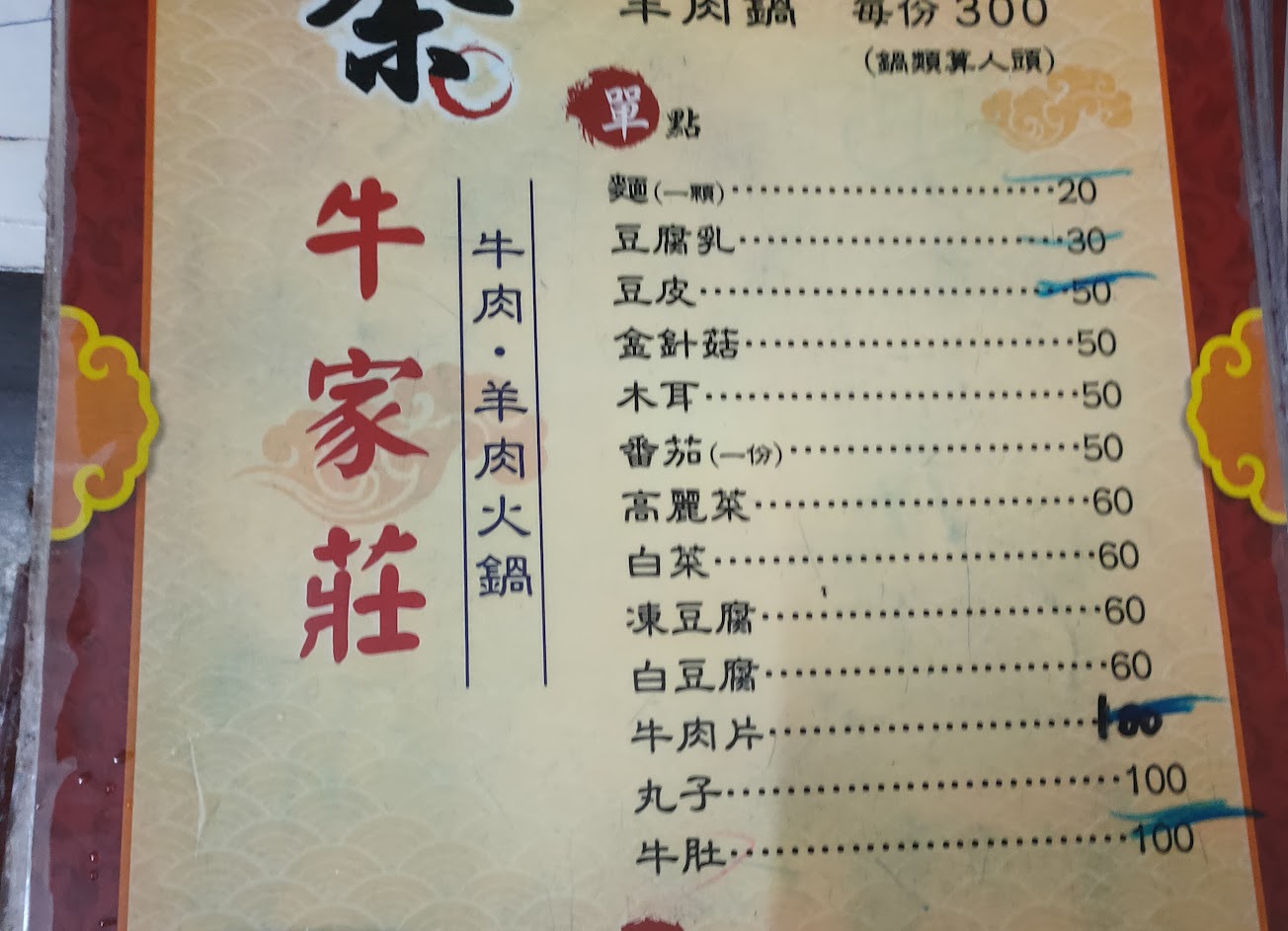 四個人點三人份(量其實很足,足到都打包回家吃第二次)開鍋已經內含主菜、豆腐、蕃茄、白菜..等,所以食量不大者可以之後看情形在加點(手工麵、豆皮、牛肚還真的不錯)。