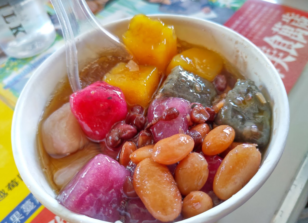 料非常豐富,火龍果芋圓確實特別,整體的CP值也滿高的,若真的講缺點,就是各口味的芋圓吃起來的口感和味道會有衝突,單吃味道偏淡,可能是自制,沒有特別加其他東西,但我還是認為滿好吃的 若滿分是5分,我會給3.8分