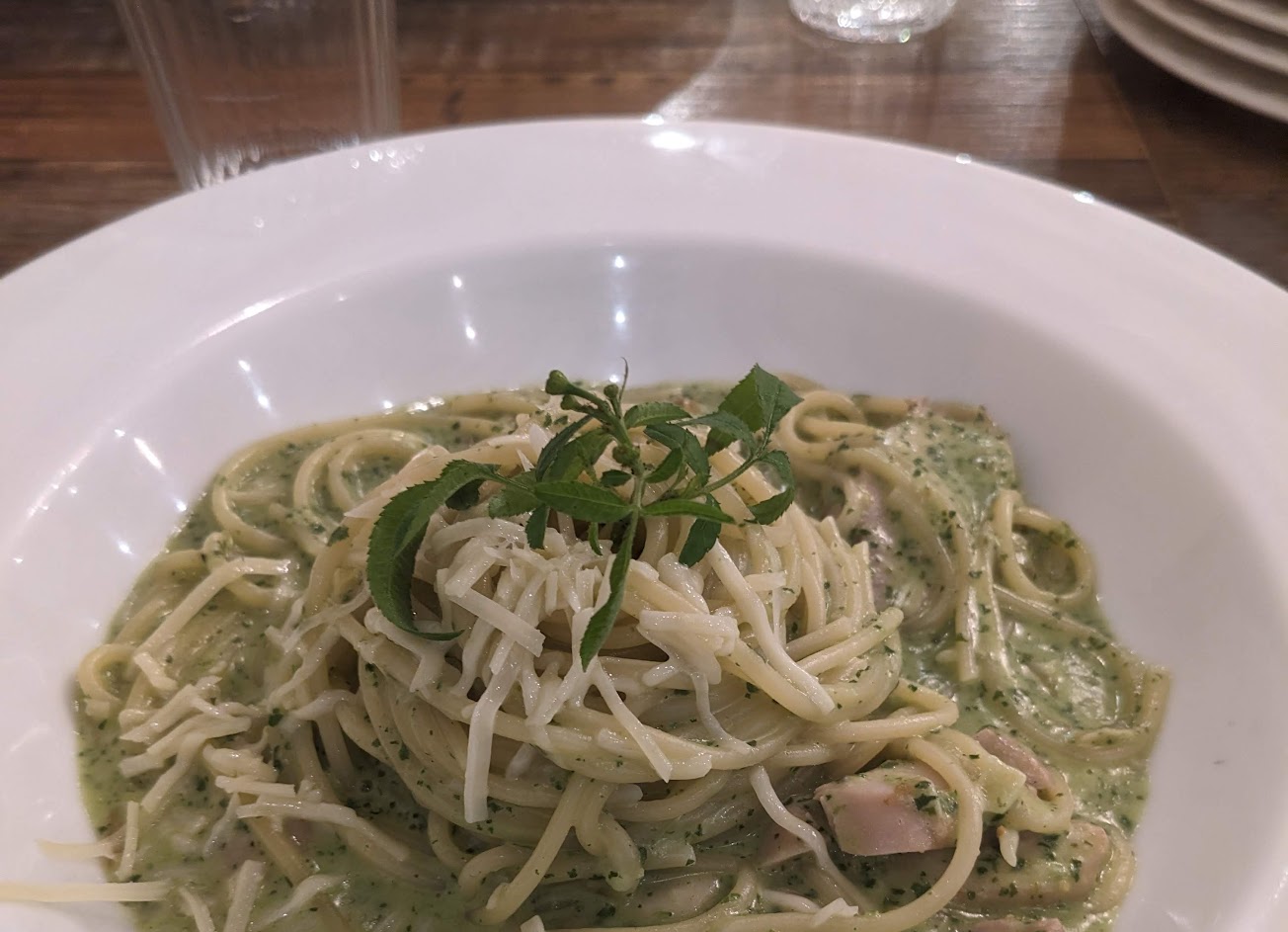 沒什麼酒的味道 奶油香氣很重很濃郁 麵稍微軟一些 整體還不錯~