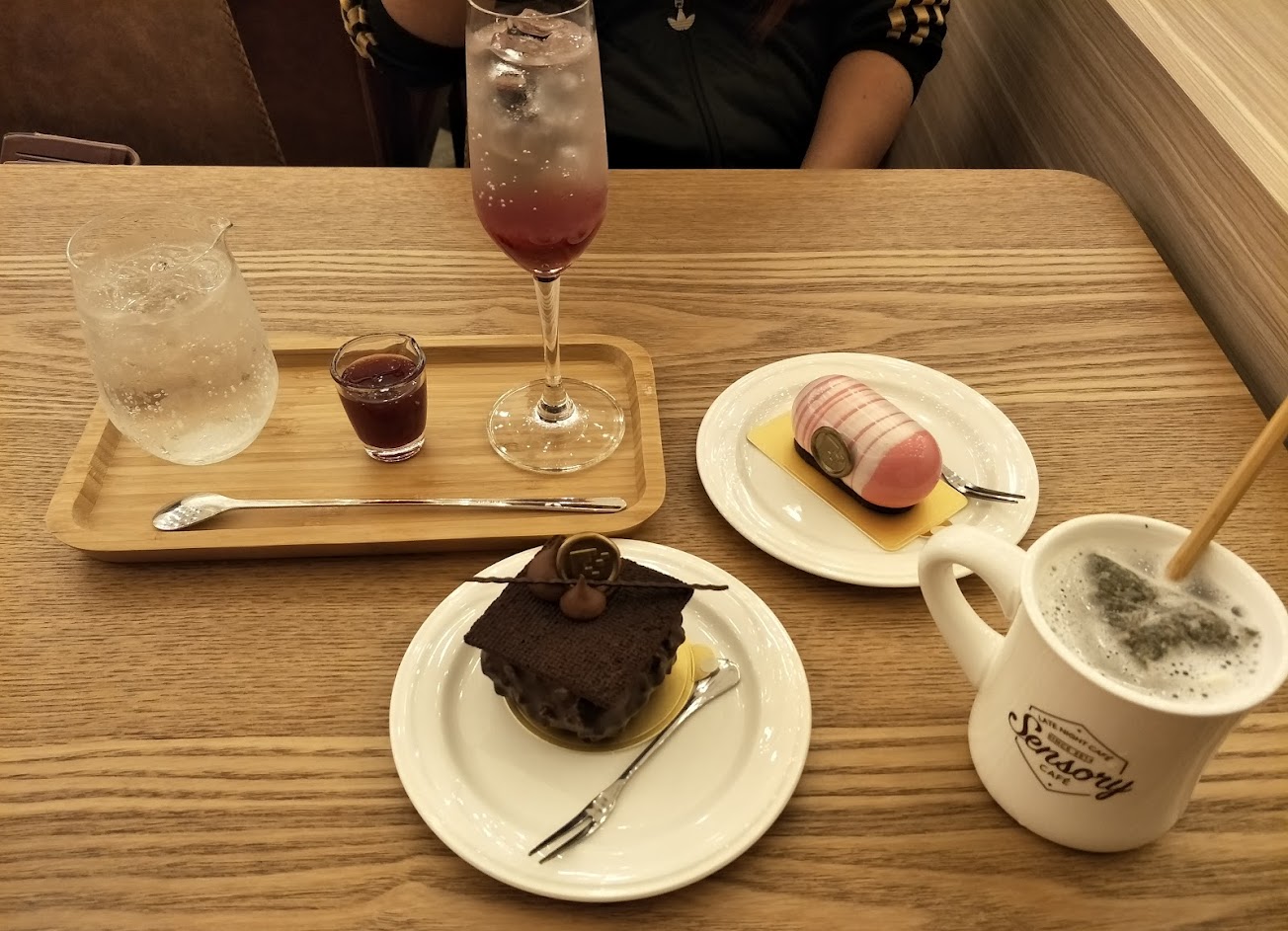 點了抹茶跟巧克力甜點和鮮奶茶. 抹茶一般, 吃久會有點膩. 巧克力好吃, 鮮奶茶清爽不會太甜. 整體來說感覺還不錯, 應該要有4點多顆星.