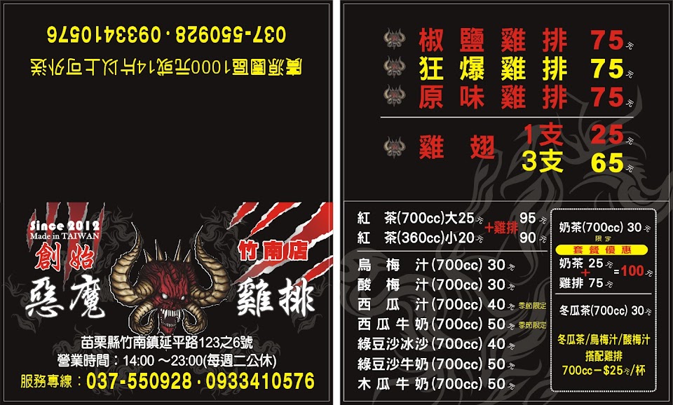 2024最新在地推薦餐廳的菜單_創始惡魔雞排 (苗栗竹南店)的菜單、圖片