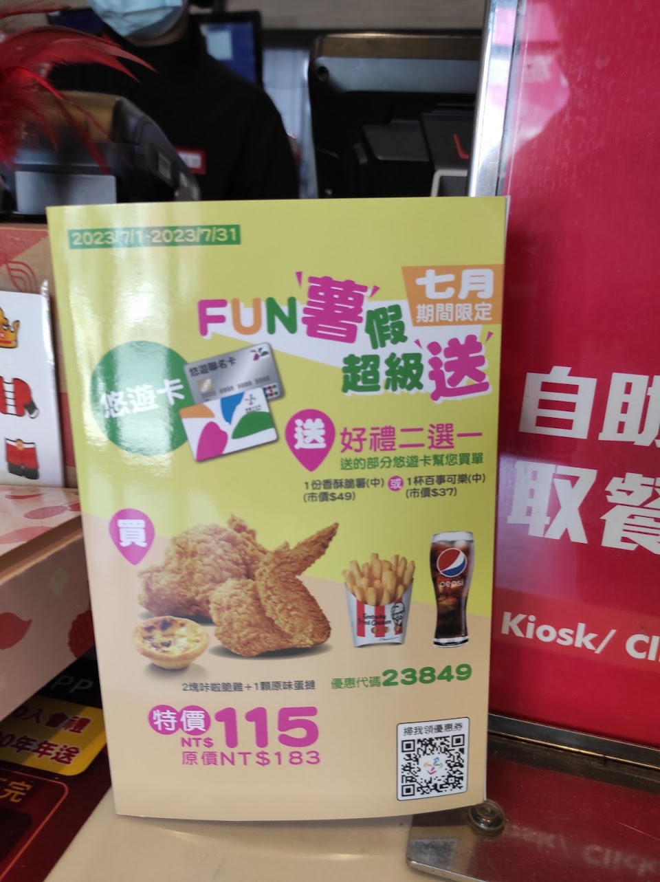 第一次進來竹南肯得雞內用,跟台北不一樣,連服務人員都有外籍腔,挺特別的。