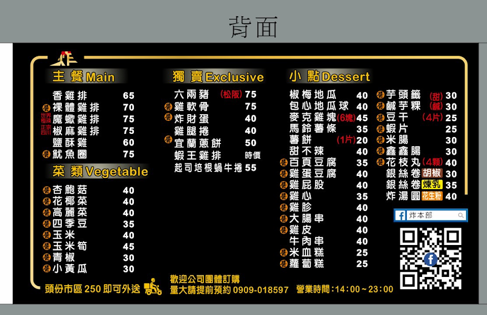 2024最新在地推薦餐廳的菜單_炸本部Fried Headquarters(竹南店)的菜單、圖片