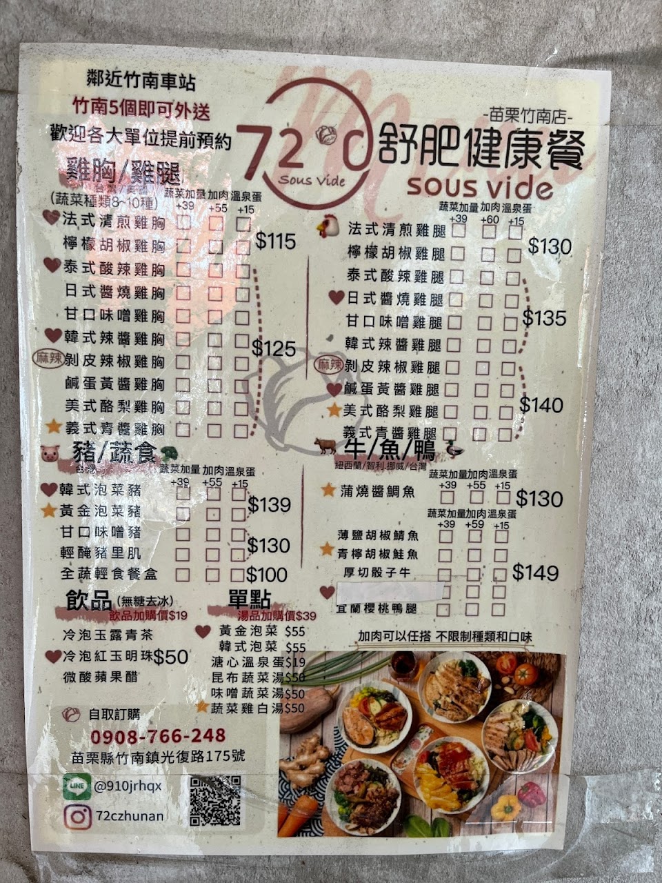 2024最新在地推薦餐廳的菜單_72度C舒肥健康餐/水煮餐 苗栗竹南店的菜單、圖片