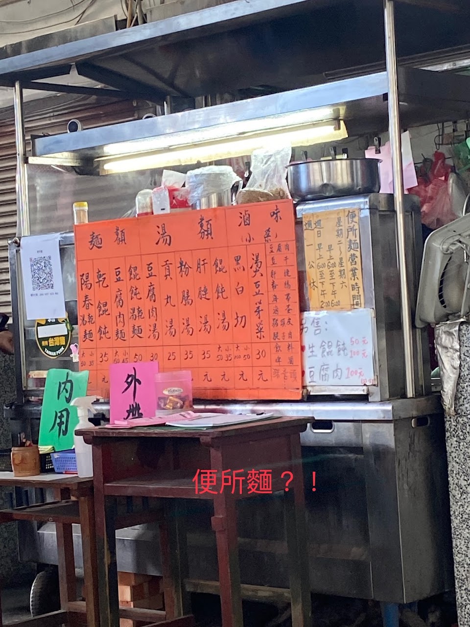 其實就是一般的麵攤 會叫便所麵是因為開在市場公廁附近 點了一碗餛飩麵加豆腐肉很好吃 小菜必點滷的有入味好吃