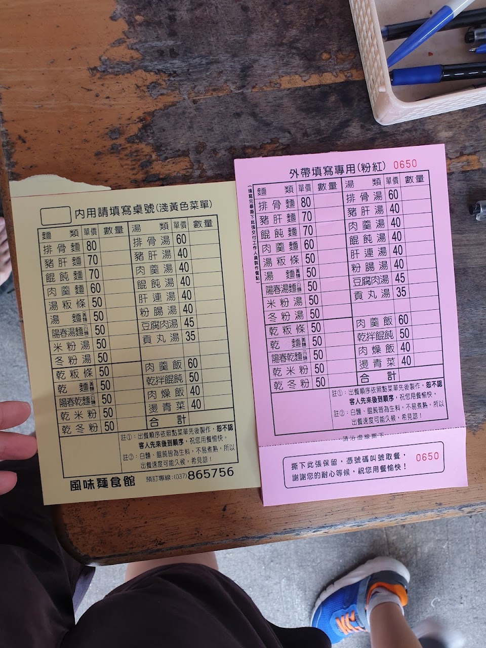 位在苗栗苑裡菜市場旁的風味麵食館,用餐時間座無虛席門口還有許多人排隊,內用先找位子坐好再填單小菜要自己去櫥窗夾再跟店員說幾號桌。