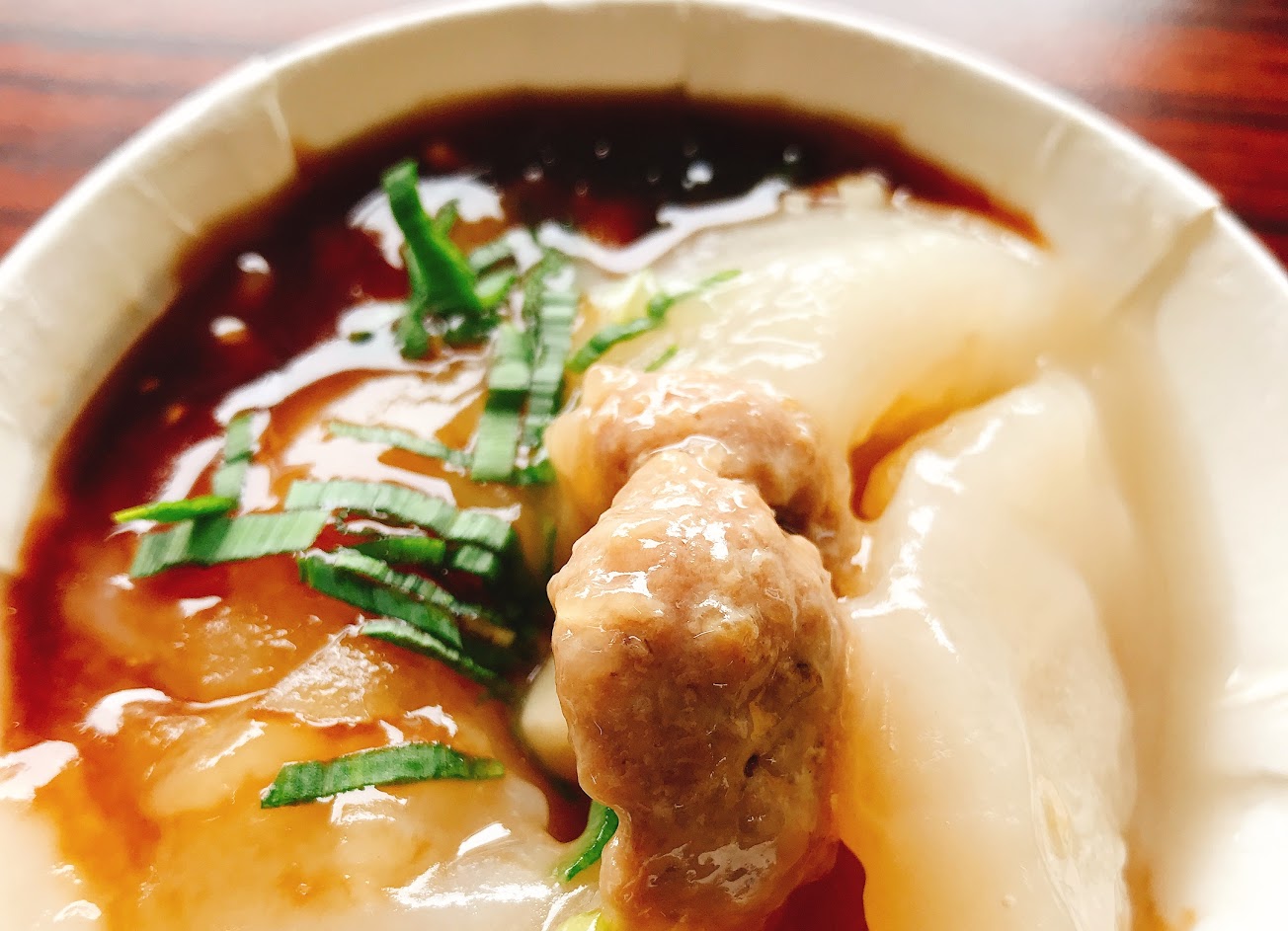 肉圓內餡比起金山更紮實有嚼勁,外皮沒那麼Q但也好吃, 整體平衡度高。品項比較少,只有肉圓和肉羹兩種, 疫情期間目前只能外帶,但外帶方式吃起來還算方便