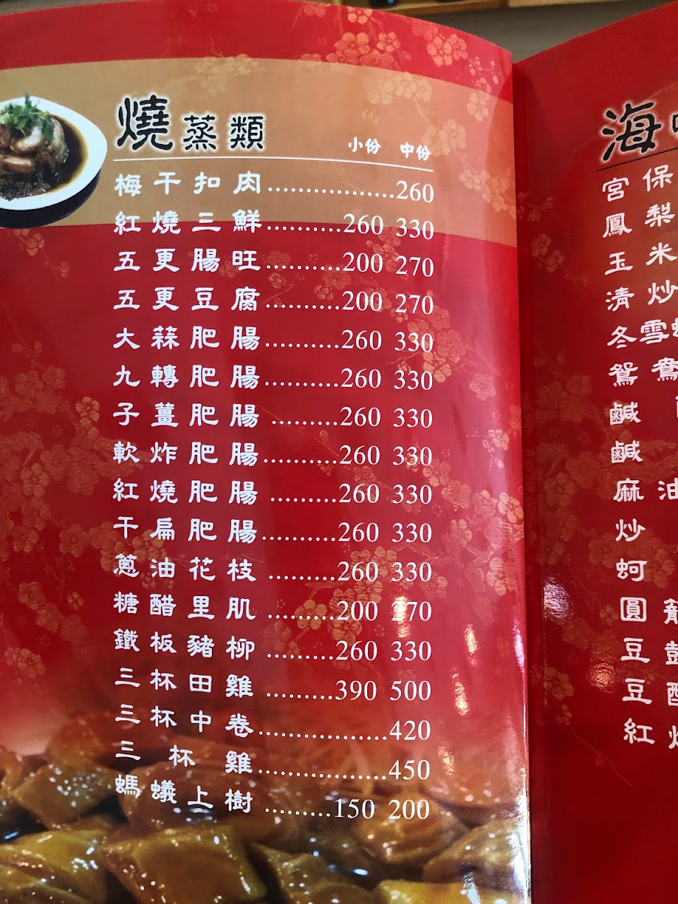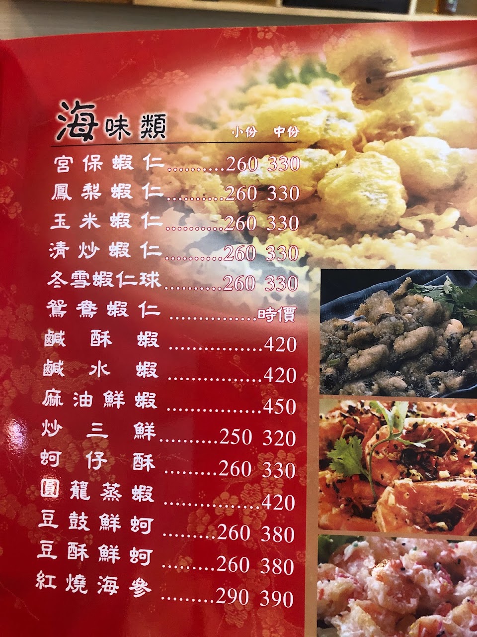 屬於婚宴場地滿大的,廁所乾淨,入口處有大魚缸養紅龍剛好小小孩可以一直看,媽咪覺得偷閒。今日用餐的人不多,覺得非常輕鬆不擁擠。菜色好吃不重鹹油膩,滿足一家老小味蕾,價位合理CP值高,列入口袋名單,有機會定會再訪。點菜:五味軟絲.京醬肉絲.梅干扣肉.蝦仁炒蛋.蔥爆牛肉.蟹黃豆腐煲.炒高麗菜.炒龍鬚菜.蛤蜊湯,家常菜色表現可圈可點,福菜不會太鹹很好吃下飯,七大三小用餐金額$2100,很可以。餐後還有水果招待。很好的用餐經驗。