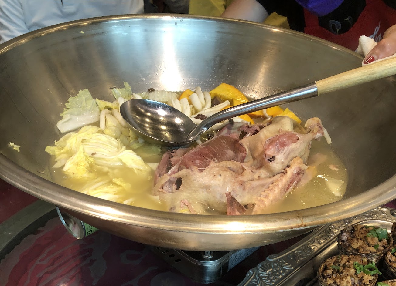 很好吃的燻鴨(鍋子也太大了吧)和石頭蝦還有芋頭飯,and薑片雞,第一次吃到這麼獨特的料理,我們叫的都是特色菜捏?
