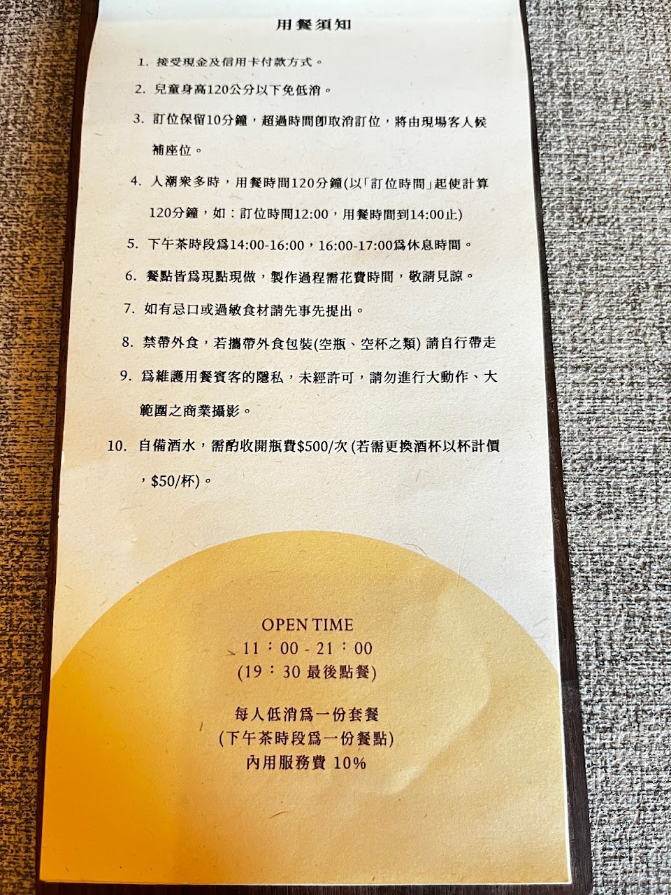 服務人員希望點餐時一位一位來,這樣他們比較好記客人點的餐點,但送餐時卻都沒有記得任何一位客人的餐點,加上點餐過程自顧自的快速說完,送餐時也並未完善介紹餐點,無法讓人更加瞭解主廚對於菜單及食材的呈現,使得整個用餐過程感到可惜,因此人員真的需要再加強訓練。