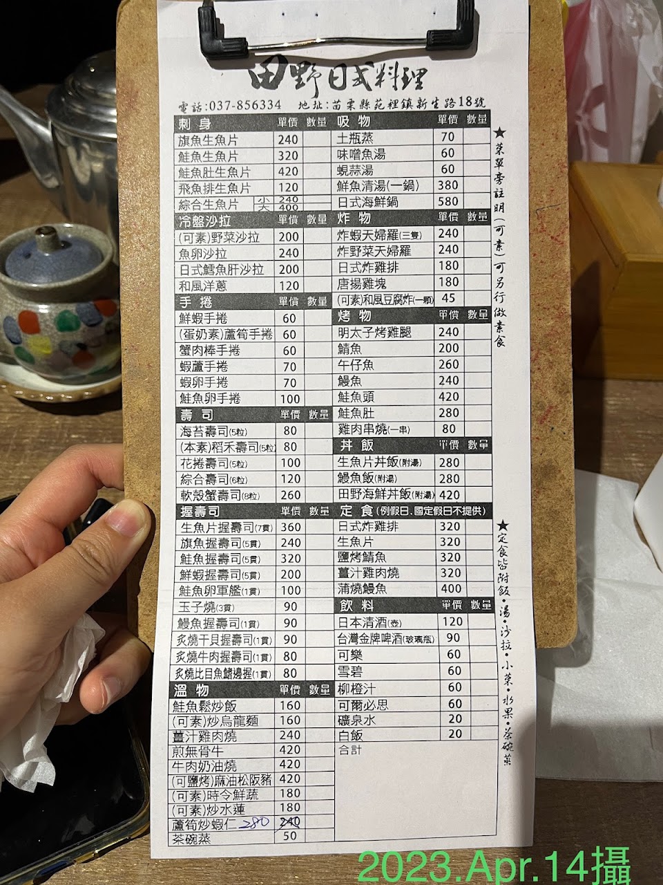 2024最新在地推薦餐廳的菜單_田野日式料理的菜單、圖片
