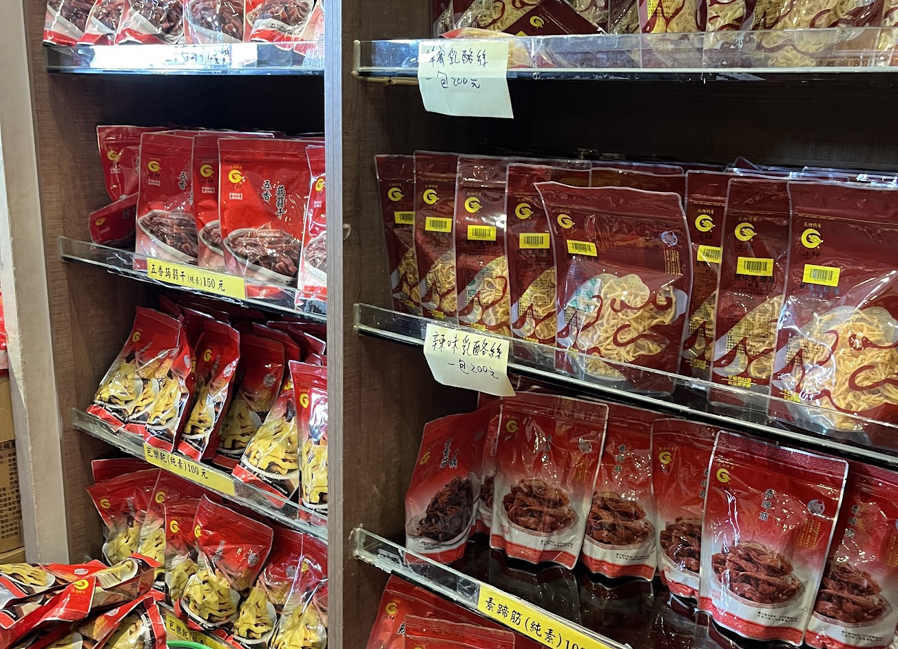 生意真的很好進去店裡感覺很像倉庫因為商品都來不及補就賣完了,以現在的物價來說商品賣的蠻便宜的,但是口味都很重吃多了對身體也不好當零食還可以不能吃多。