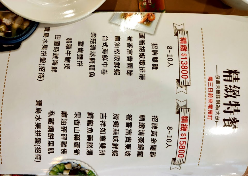 菜色都很有特色,別處吃不到 服務 內用 餐點類型 午餐 平均每人消費金額 $600-800 停車場 位置夠多