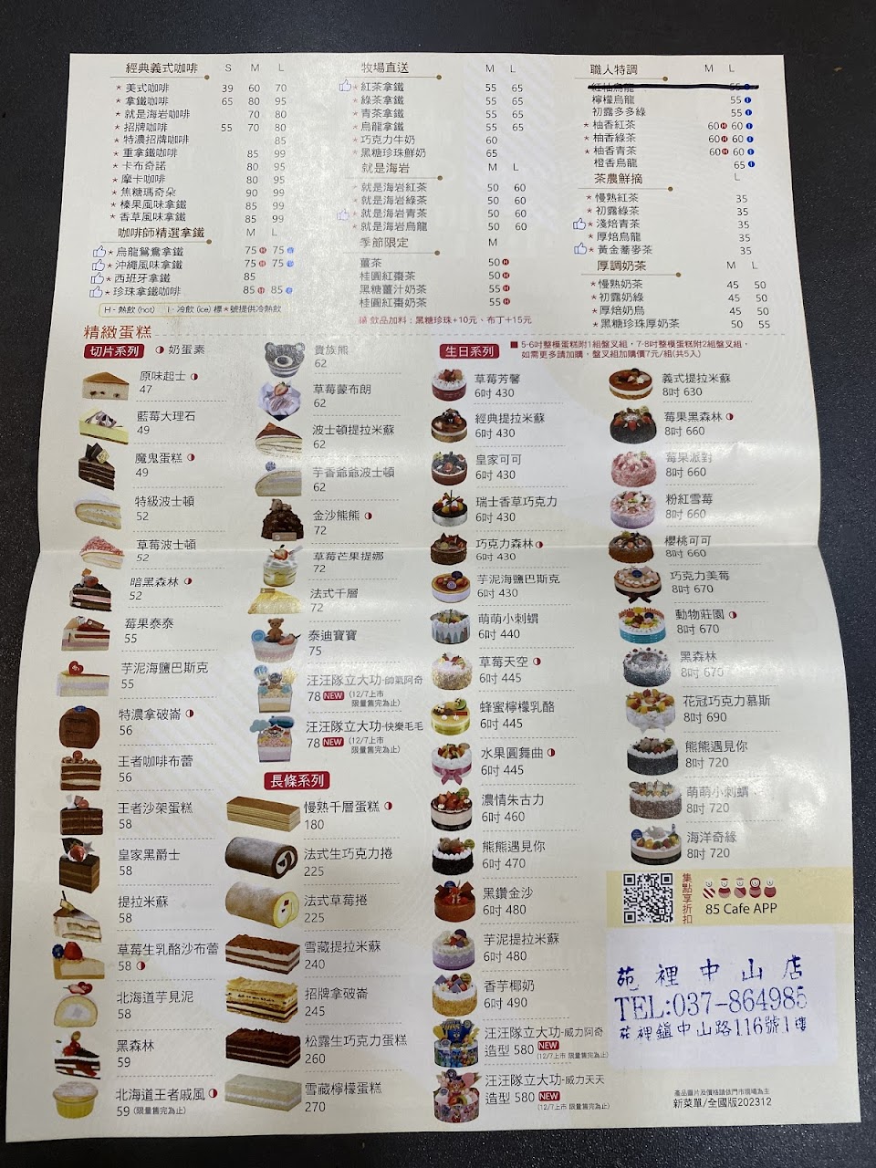 2024最新在地推薦餐廳的菜單_85度C 咖啡蛋糕飲料麵包-苑裡中山店的菜單、圖片