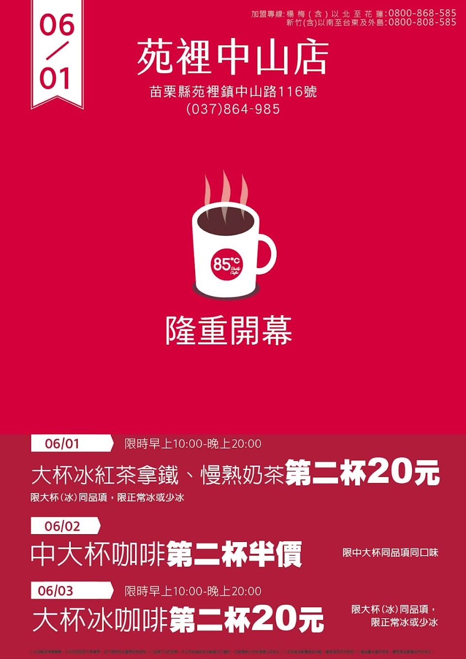 85度C 咖啡蛋糕飲料麵包-苑裡中山店