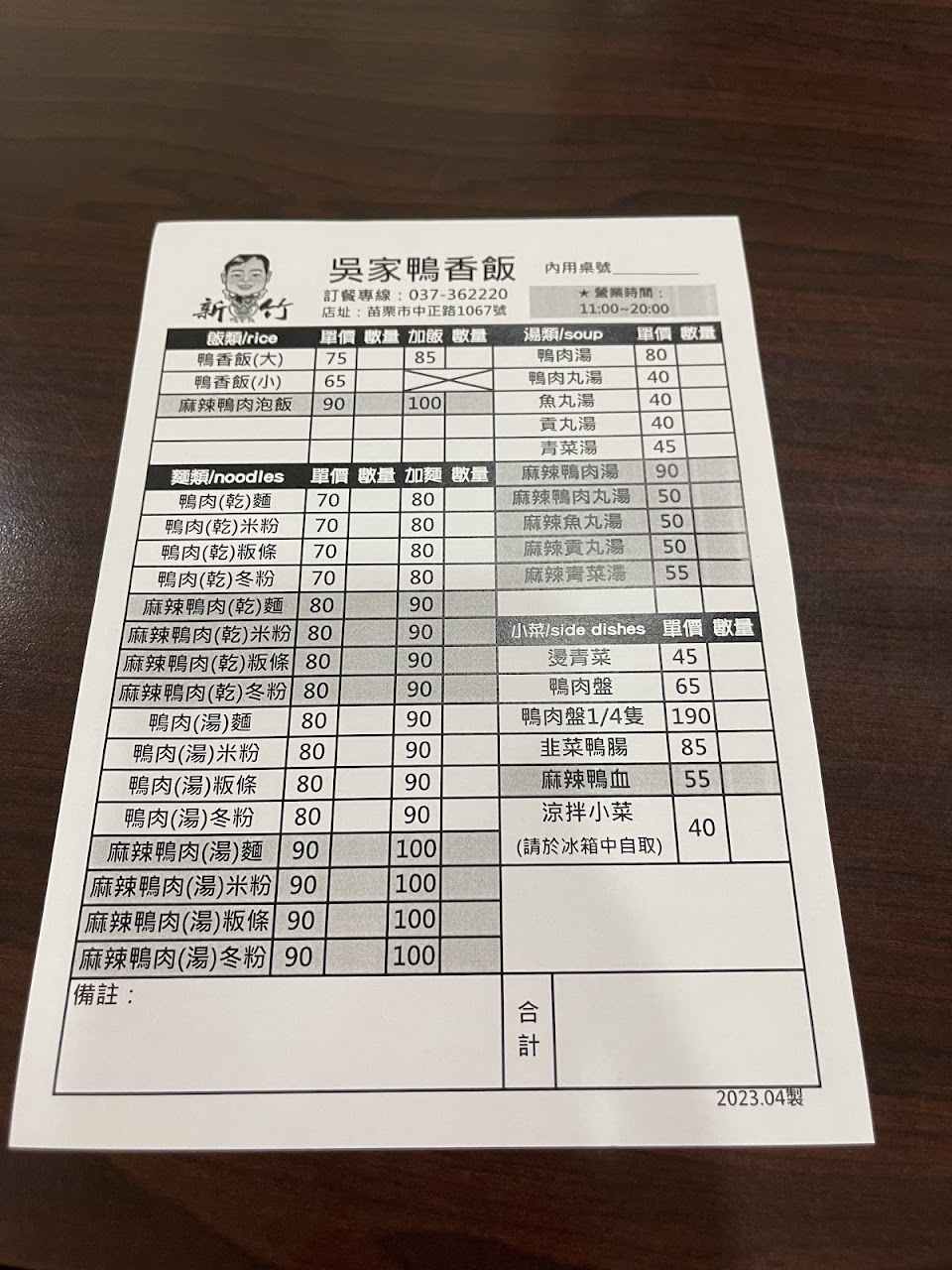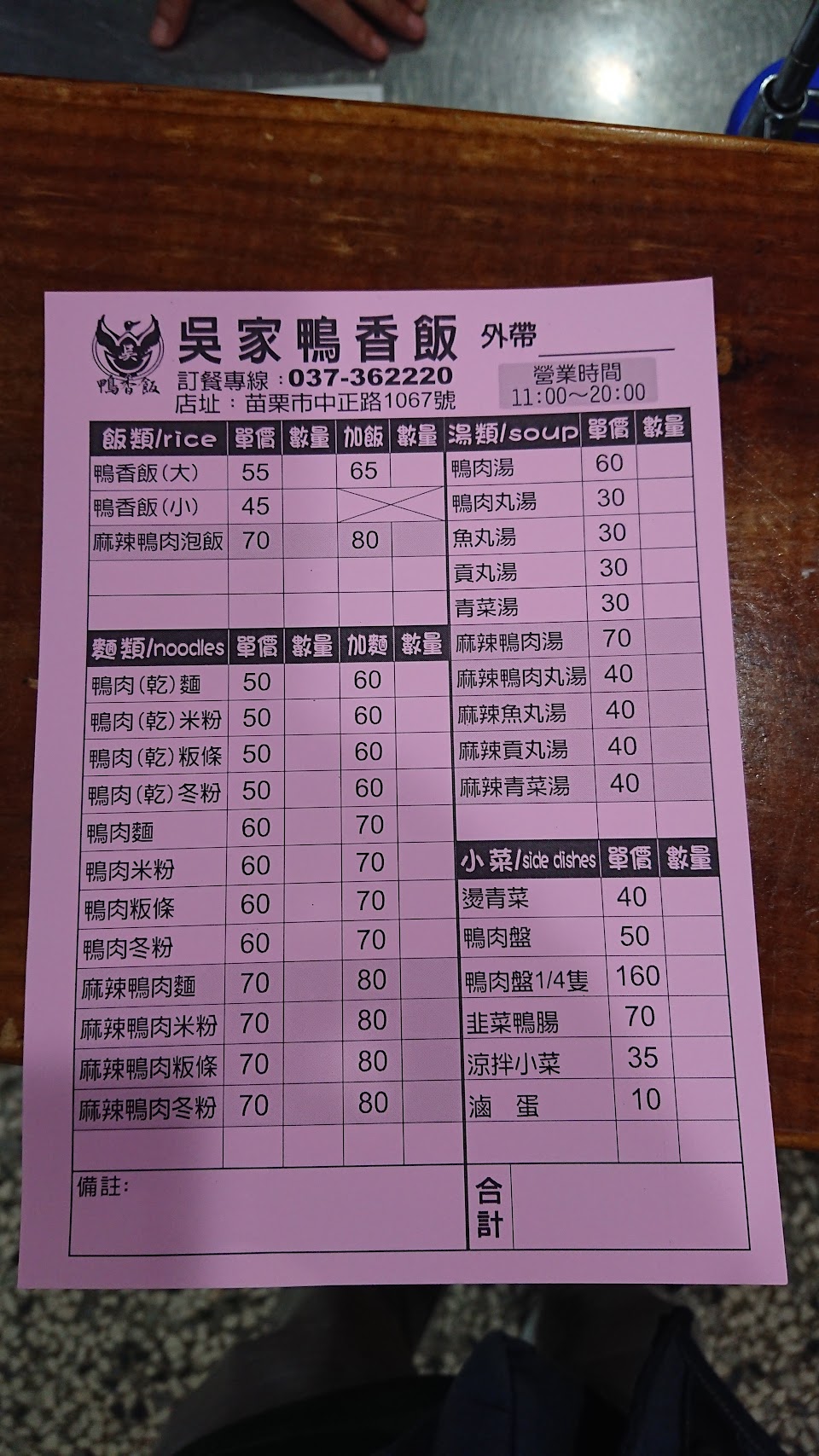 2024最新在地推薦餐廳的菜單_新竹吳家鴨香飯-苗栗店的菜單、圖片