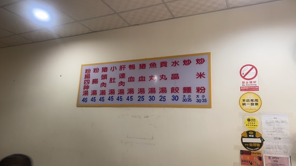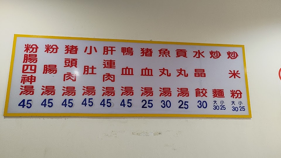 鴨血湯,豬血湯,四神湯,水晶餃(乾、湯),炒麵+米粉都好吃。