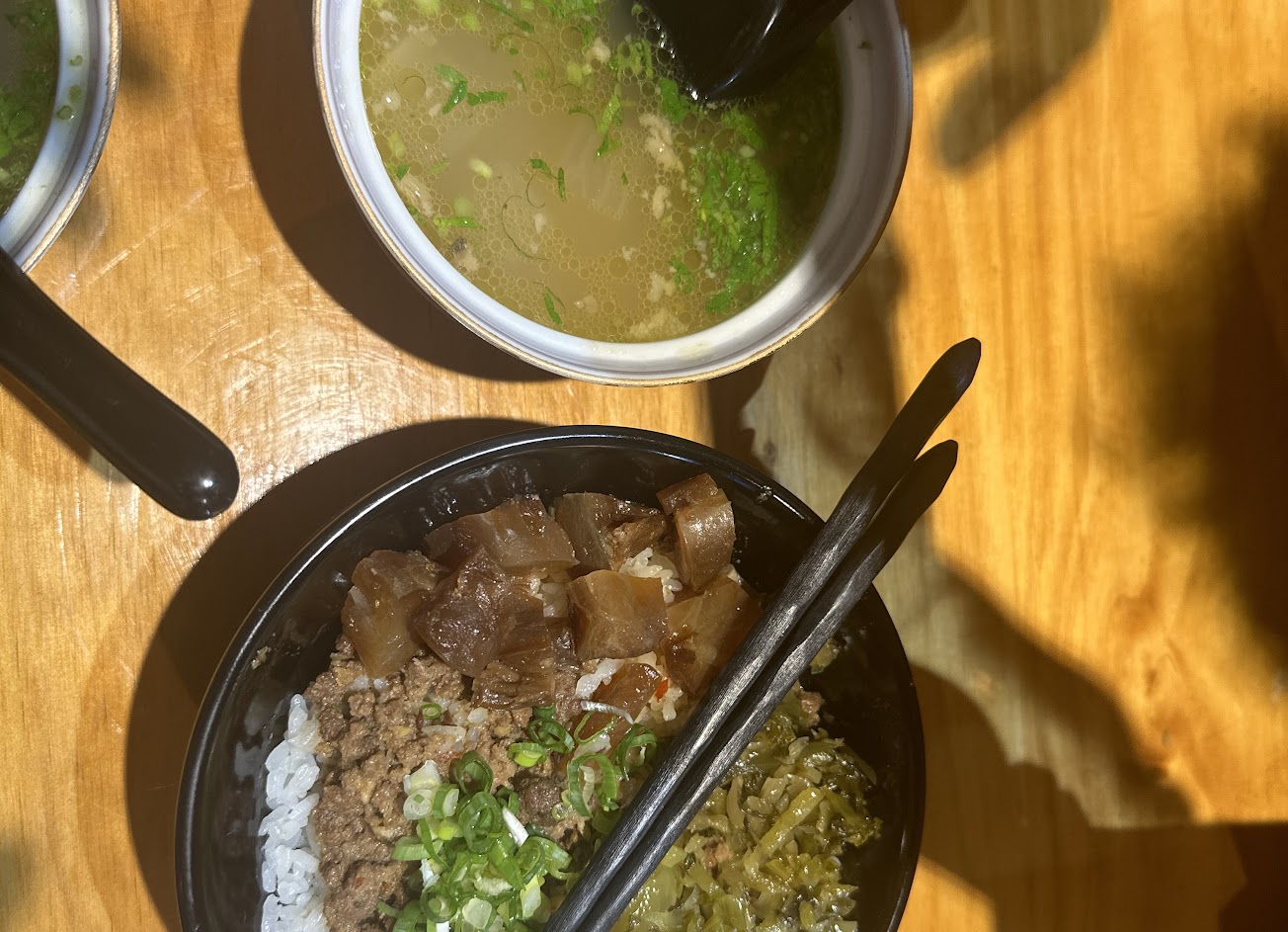 牛筋滷肉飯香氣十足,牛雜湯鮮甜不膩,服務態度親切,用餐環境優。