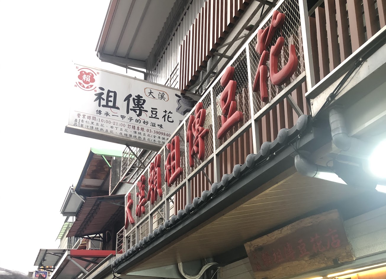 「大溪賴祖傳豆花」位於下國道三號的大溪交流道後,走省道3往大溪老街方向,在距離交流道約1.7公里左右,就可看到的仁和路(沒塞車約5~6鐘可達)。 平常日這間人氣爆表,假日會有更極為誇張的排隊人潮…。而且店面不在鬧區,且仁和路上只看到另外兩家,應該是後來才開的豆花店,也就沒有其他的店家了,特別這還只是賣庶民小吃的豆花,人潮竟然能排到這般的長,真是第一次看到有豆花店能有如此誇張的人氣,當然會排隊一定有他的原因。 門面不大,而且只有點餐窗口與取餐窗口,店家僅有外帶方式,無內用座位,人氣還能如此這般強強滾。創立至今已超過60年頭的「大溪賴祖傳豆花」,豆花的口感軟綿細緻,充滿傳統的古早味,其中又以〝青仁黑豆花〞,風味最獨特且美味。豆類配料也是口感綿密、軟而不爛,Q圓與芋圓的口感,比一般常見顯得十分Q彈,越咀嚼越有趣,依舊還是能吸引人潮。