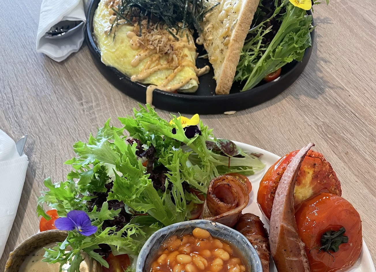 今天點了雞肉溫沙拉與歐姆蛋,但發現溫沙拉裡的堅果們不是很新鮮,除了這個以外..大致上是不錯吃的???? …