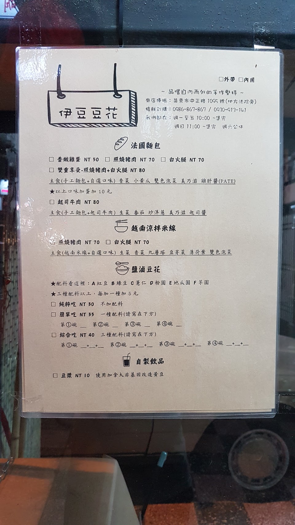 法國麵包(感覺白火腿很有越南味) 和豆花料多好吃,特別推薦豆漿,是我在苗栗市喝過最最最香濃的,而且一大杯才10元!!!